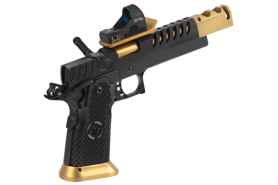 This flagship 2011-style competition pistol is purpose-built for IPSC Open Division, representing one of the most refined and high-performance platforms in its class. Designed with a one-piece steel grip and advanced mass distribution, it delivers exceptional balance, control, and shooting stability even at high speed.